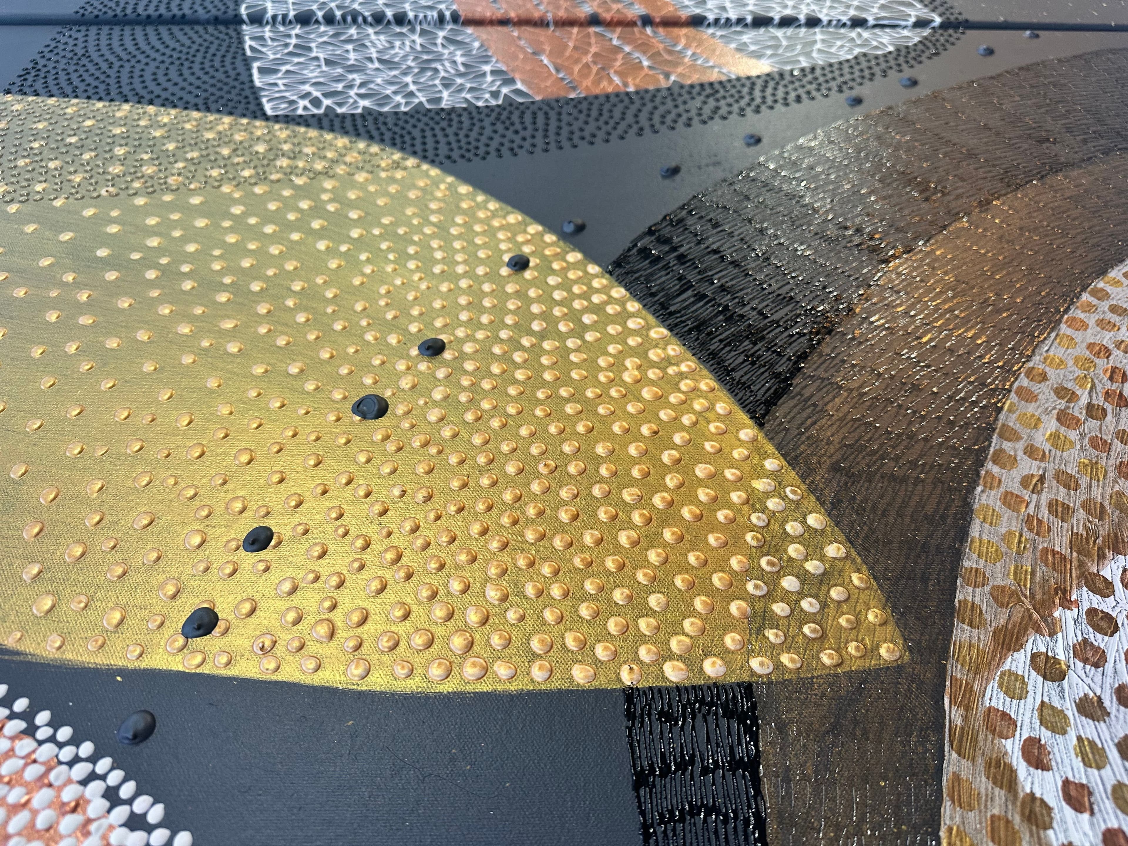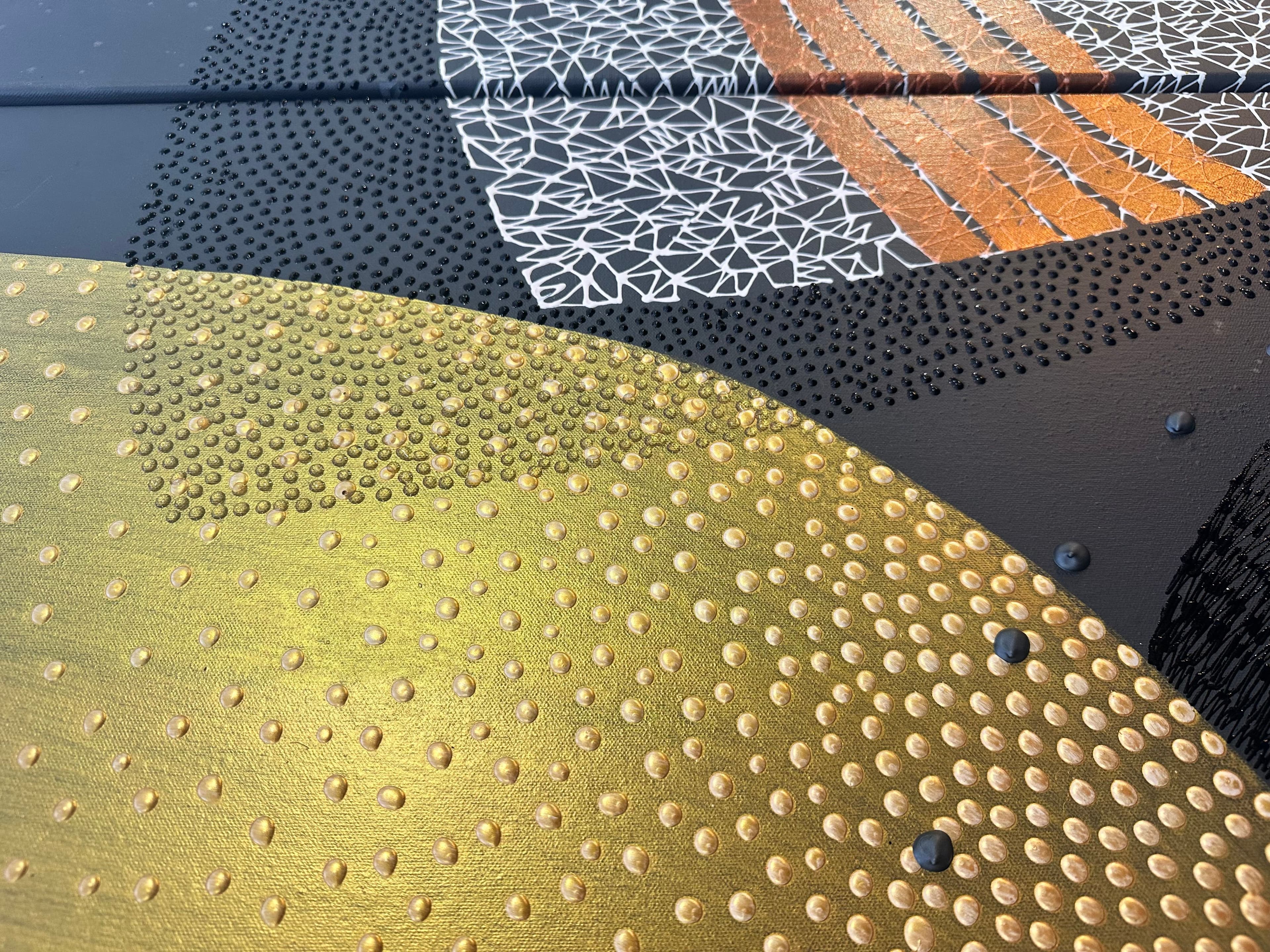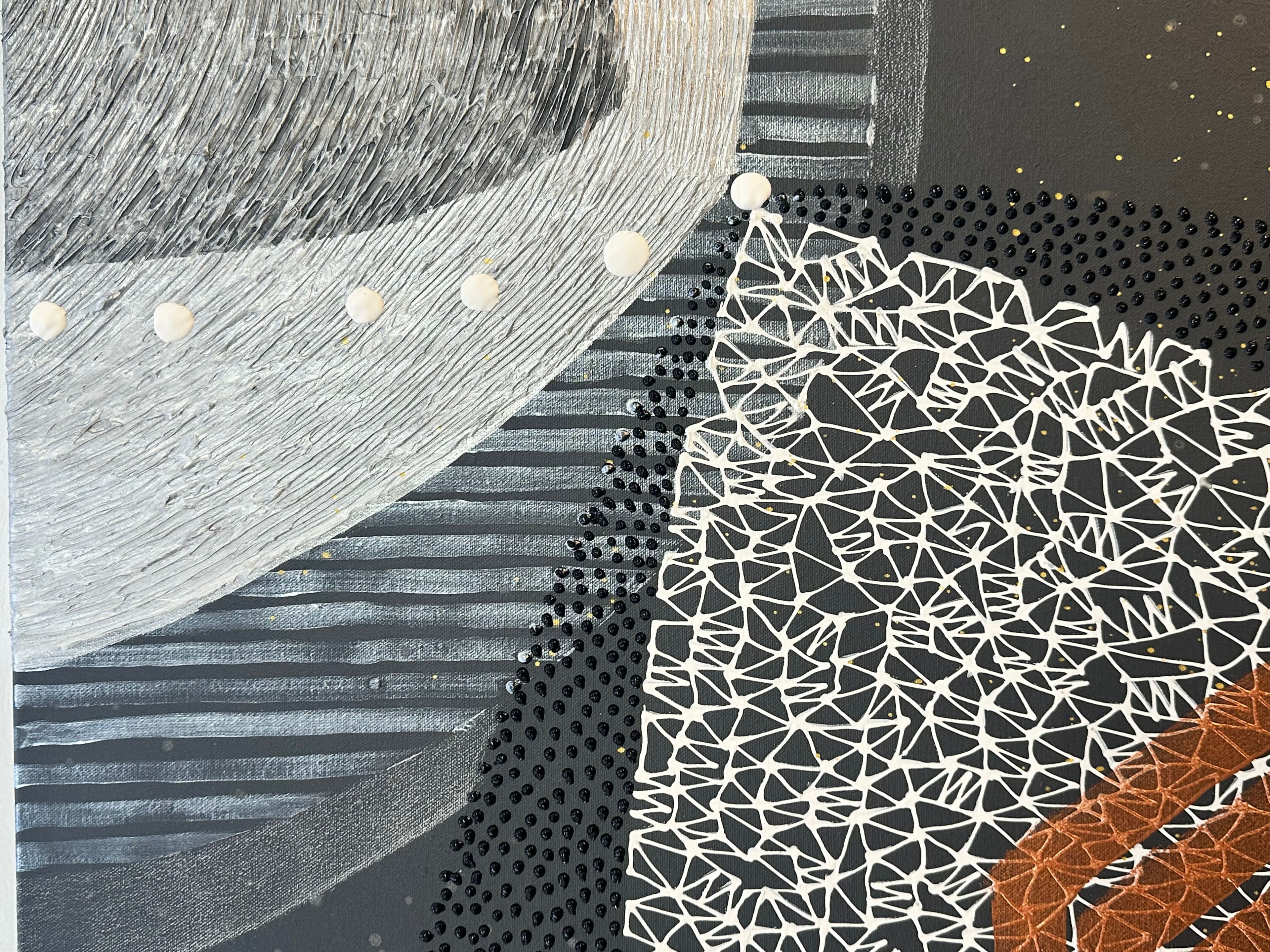 Depending on the light, the reflective surfaces shift and shimmer — the artwork feels different each time.