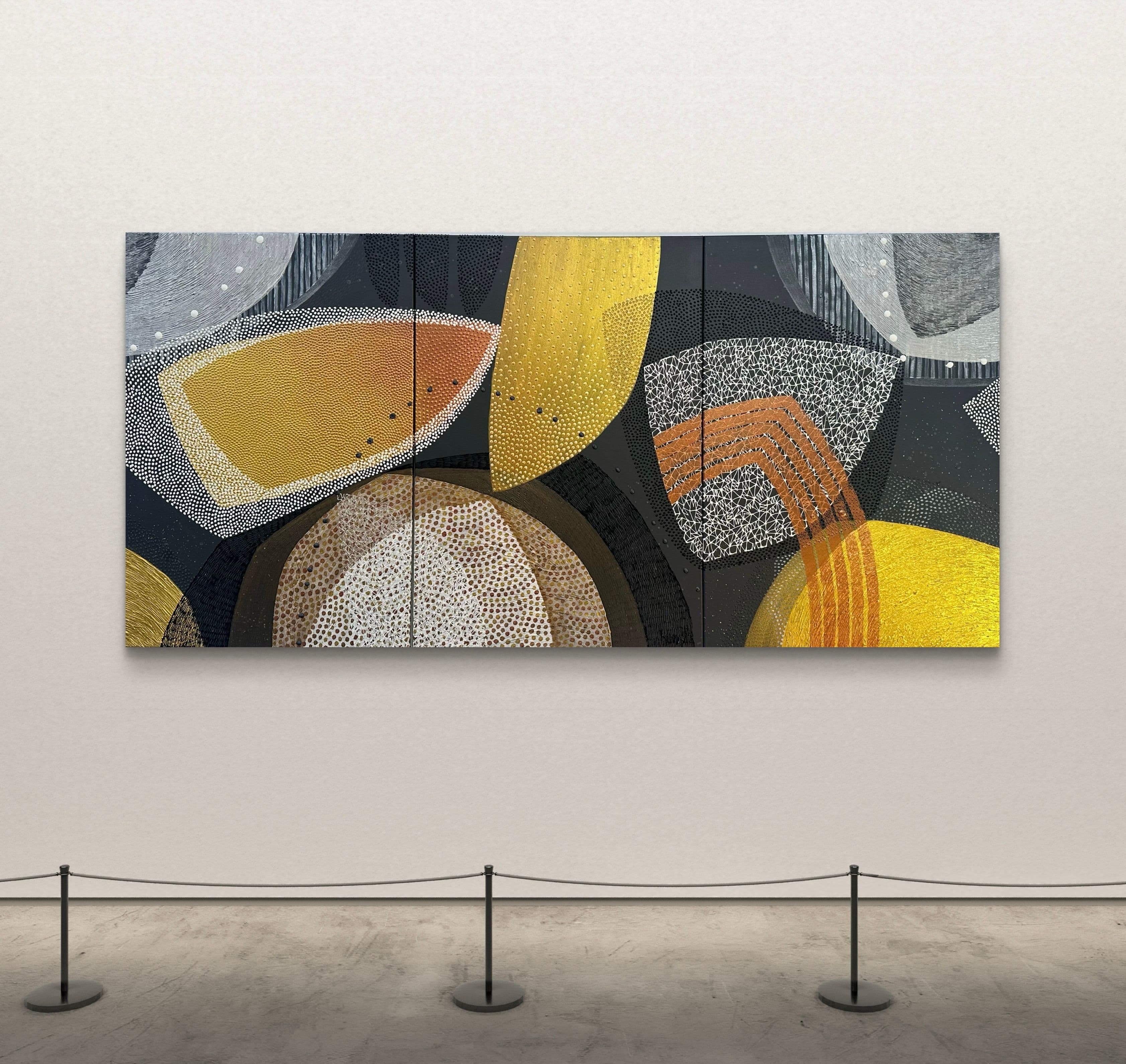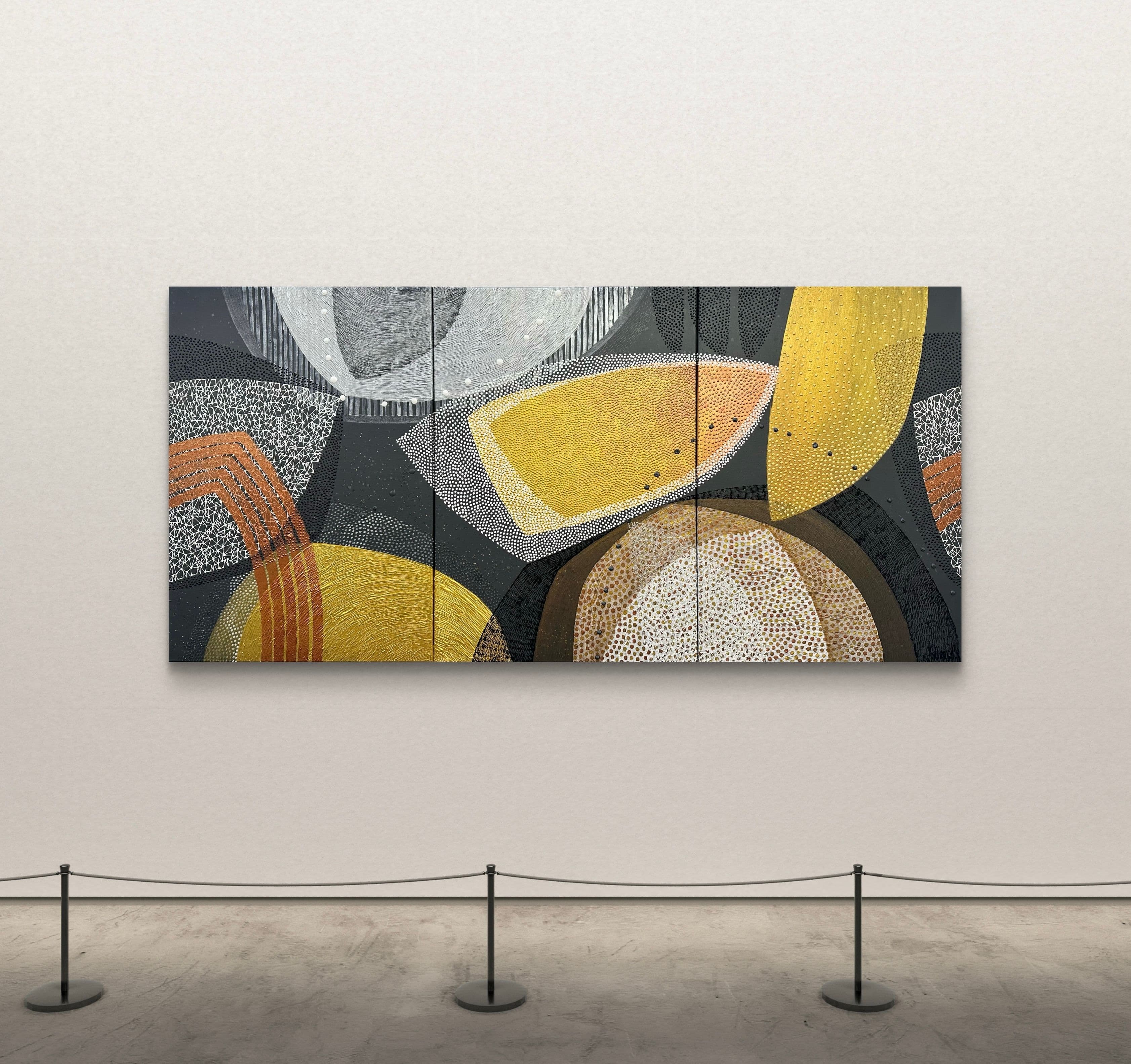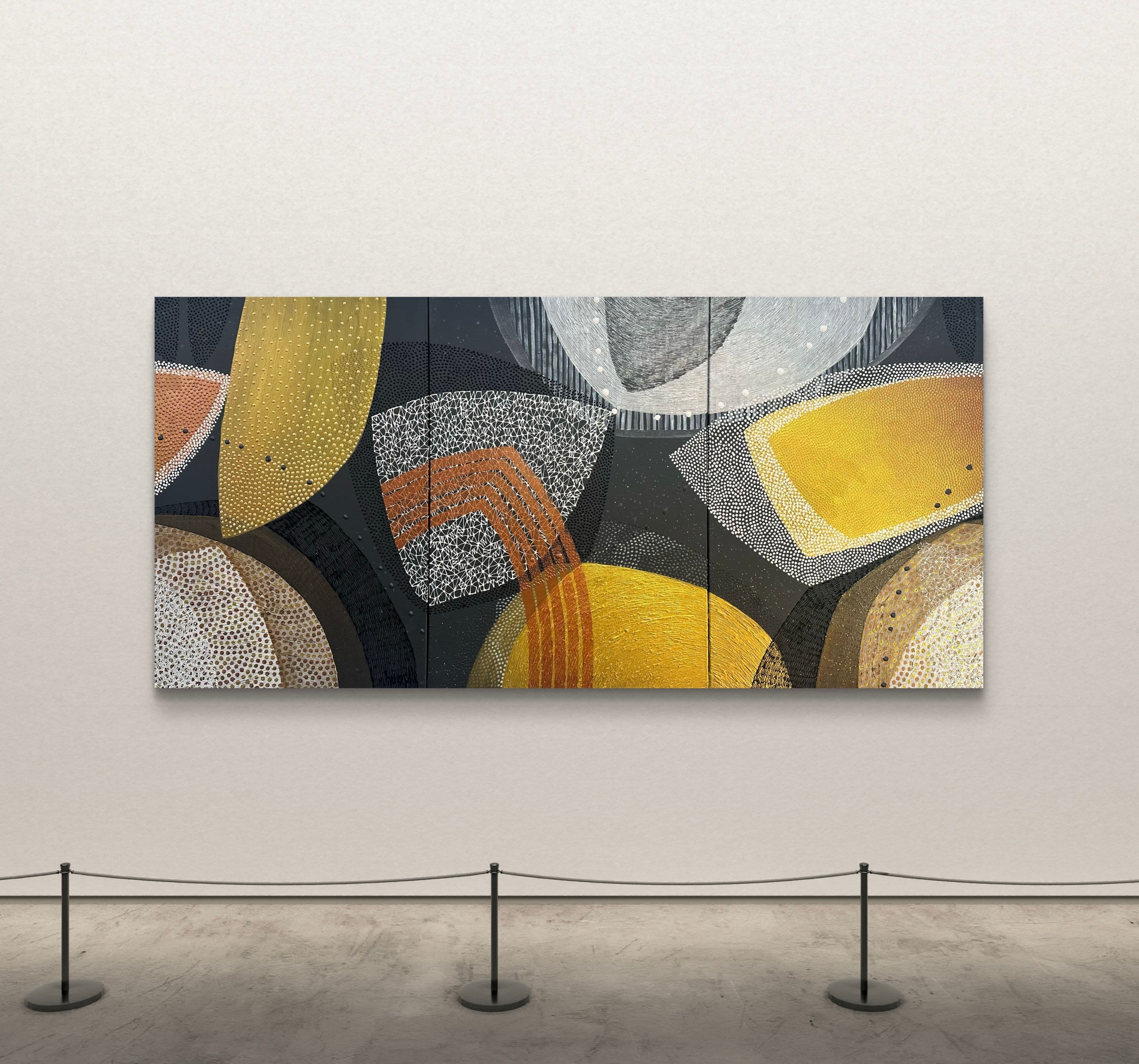 Depending on the light, the reflective surfaces shift and shimmer — the artwork feels different each time.