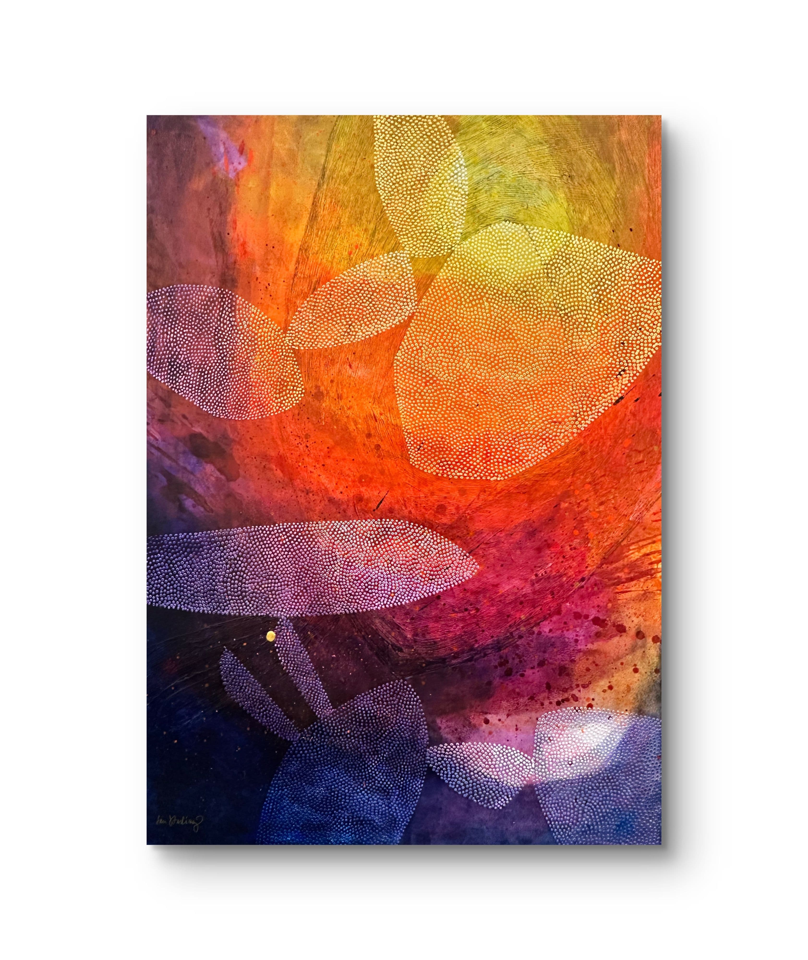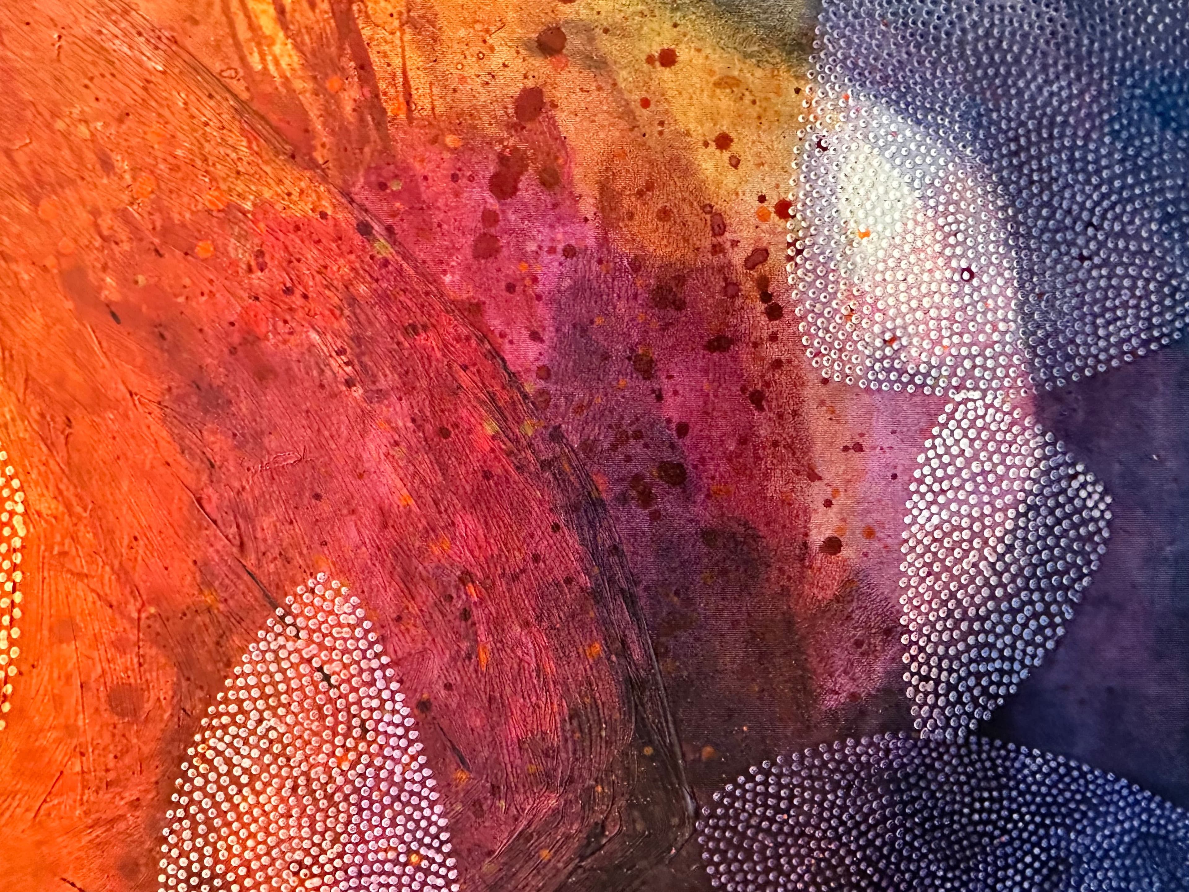 Very vibrant and colorful painting full of emotions and spirit. There is many layers of rich colors and structure.