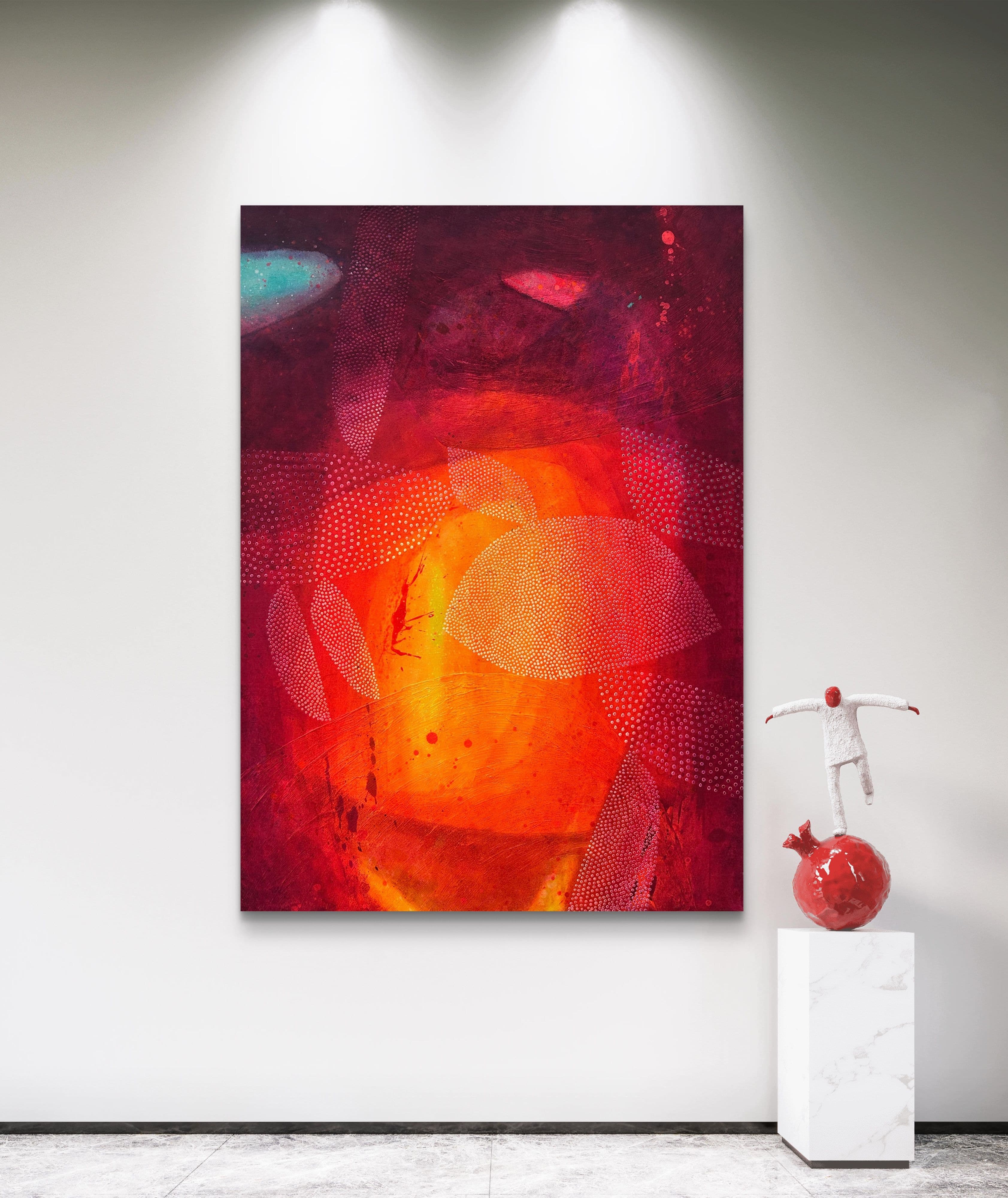 In this vibrant acrylic creation, I've poured my heart into every brushstroke, conjuring a tapestry of emotion. Abstract forms and a rich, crimson palette evoke a sense of nostalgic introspection, while dynamic textures invite the eyes to dance across the surface. It's a visual symphony of passion meant to stir the soul, adding a burst of energy and a warm, invigorating ambiance to any space it graces.